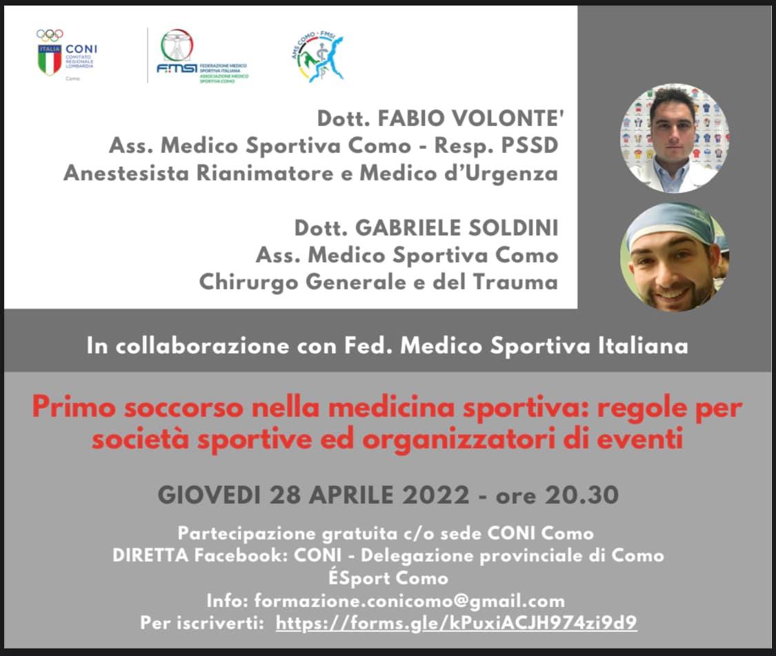 Proseguono gli incontri in presenza della Delegazione CONI Como in collaborazione con l’Associazione Medici Sportivi – Como.